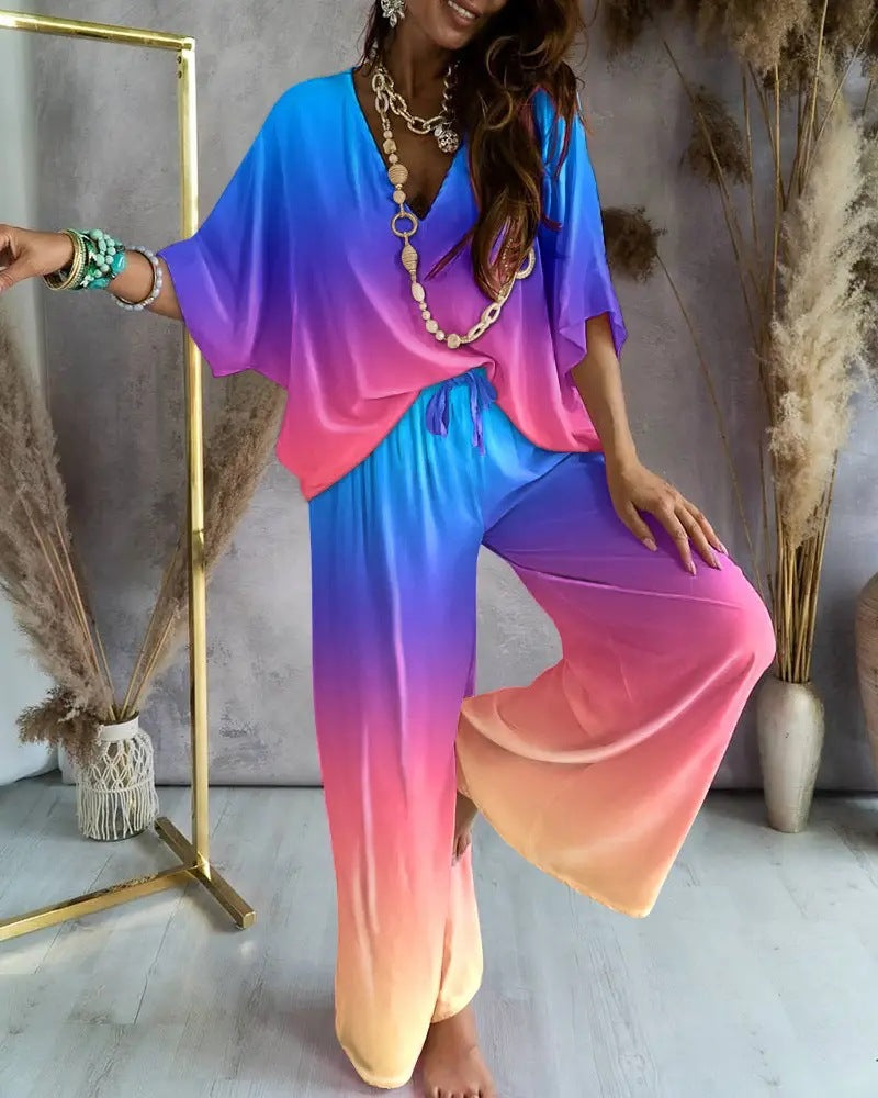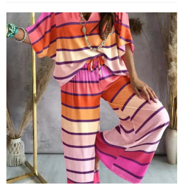 The wide-leg pants offer a flattering, elongating shape, while the V-neck top adds a hint of casual charm. Whether you're heading out for coffee, working from home, or catching golden hour with friends, Nina brings understated confidence to any look.